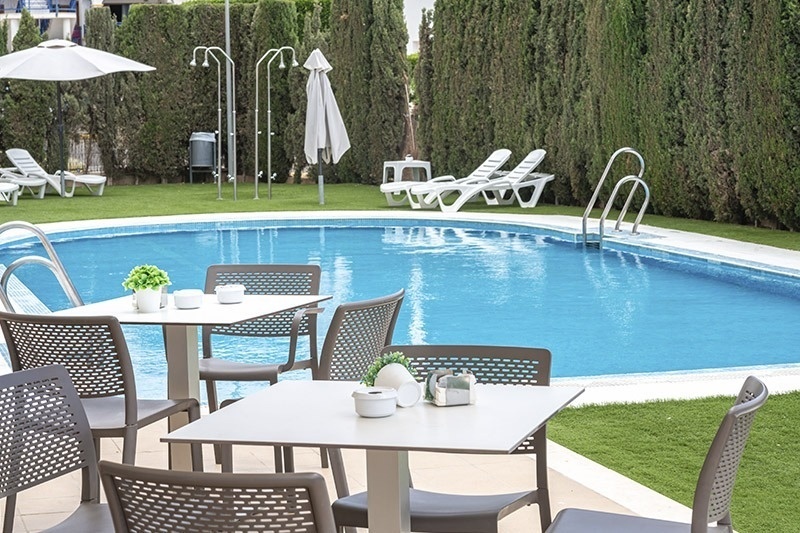 «El hotel es pequeño… pero muy acogedor ...la habitación grande ... cogimos una con cama de matrimonio y tenía un sofá cama ...tiene dos armarios grandes y el suelo de plaqueta ..el baño completo con bañera y una terraza con vistas a las piscinas .... Las piscinas hay 3 dos para adultos y una para niños ...muy limpias .. lo único q ninguna cubre La playa está muy cerquita ...se puede ir andando ...desde nuestra habitación veíamos el mar... La chica de recepción que nos atendió cuando llegamos muy amable .. Nos ha gustado mucho y hemos estado muy a gusto ... Volveremos ..un saludo»